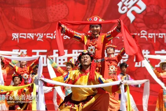 國(guó)家旅游地理 西藏阿里8月3日訊 8月3日,當(dāng)?shù)厝罕娫陂_幕式上表演富有民族特色的歌舞《美麗的阿里》。當(dāng)日,西藏阿里地區(qū)第五屆象雄文化旅游節(jié)在獅泉河文化廣場(chǎng)開幕。此次文化旅游節(jié)將舉辦阿里象雄文化研討會(huì)、旅游紀(jì)念品展覽、攝影展等十余項(xiàng)活動(dòng)?! ? 新華社發(fā)(蔣先平 攝)