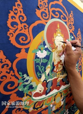 國家旅游地理 西藏拉薩8月4日訊 8月3日,一名畫師在現(xiàn)場演示唐卡繪制過程。當日,第三屆西藏“唐卡藝術博覽會”在拉薩羅布林卡舉行,共展出89名優(yōu)秀畫師的230多幅精品力作。唐卡作為藏族特有的繪畫,有上千年的歷史,已成為藏族文化的“名片”,受到國內(nèi)外廣泛關注。 /新華社記者 覺果 攝