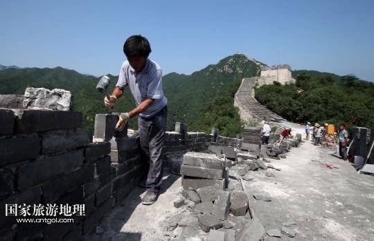 國(guó)家旅游地理 北京8月5日訊 8月4日下午,施工人員在北京懷柔西水峪古長(zhǎng)城進(jìn)行修繕。西水峪古長(zhǎng)城始建于明代,此次修繕部分總長(zhǎng)960米,在嚴(yán)格保障結(jié)構(gòu)安全以及原有風(fēng)貌的前提下進(jìn)行恢復(fù)性修繕,修繕后將達(dá)到對(duì)游客開(kāi)放攀登的標(biāo)準(zhǔn)。預(yù)計(jì)修繕工程將于今年10月底完成,屆時(shí)經(jīng)過(guò)專(zhuān)業(yè)部門(mén)驗(yàn)收后有望對(duì)外開(kāi)放。 /新華社發(fā)(卜向東 攝)