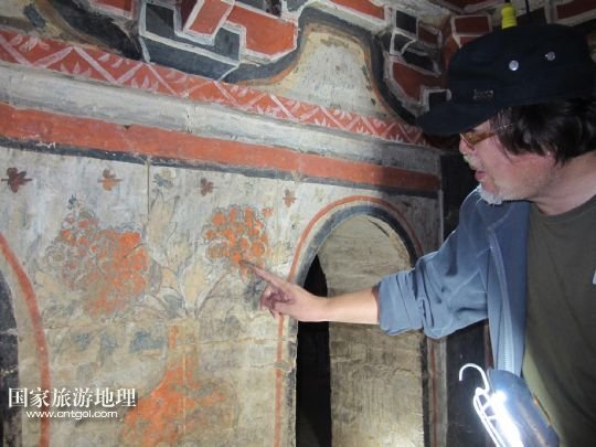 國家旅游地理 陜西延安9月15日訊 9月14日,考古學(xué)家正在查看畫像磚墓內(nèi)的壁畫。經(jīng)過近三個月的緊張工作,陜西省考古學(xué)家日前在陜西延安配合基建時(shí),首次對一座宋金時(shí)期大型畫像磚墓進(jìn)行了科學(xué)考古發(fā)掘。發(fā)現(xiàn)這座畫像磚墓竟是仿木磚結(jié)構(gòu)多室墓,對了解和研究陜北畫像磚墓形制、建筑結(jié)構(gòu)及其分布與內(nèi)容等,具有重要的標(biāo)尺性意義。 /新華社記者馮國攝