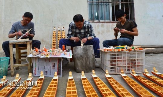 國家旅游地理 湖北宜昌5月15人訊 5月15日,手工藝人鄭祥龍?jiān)跒槲⑿妄堉凵淆堫^。端午節(jié)臨近,屈原故里湖北省秭歸縣歸州鎮(zhèn)手工藝人鄭祥龍精心制作一條條微型木制龍舟,準(zhǔn)備在端午文化節(jié)期間向中外游客進(jìn)行展示。