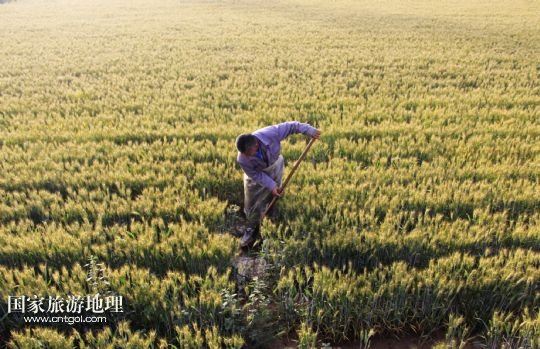 5月20日,河南省安陽市內黃縣城關鎮(zhèn)農民在麥田里勞作。
