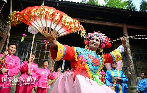 國家旅游地理 湖北恩施5月28日訊 5月27日,湖北省利川市柏楊壩鎮(zhèn)柏壩楊村的民間藝人陳文菊在表演利川燈歌的代表作《龍船調(diào)》。利川燈歌起源于湖北省恩施土家族苗族自治州利川市柏楊壩鎮(zhèn)一帶,距今約300多年歷史,2011年入選第三批國家級非物質(zhì)文化遺產(chǎn)名錄。有記載稱,從清朝開始,當(dāng)?shù)厝罕姺昴赀^節(jié)、喜慶集會、玩彩龍船時都要唱燈歌。如今,在柏楊壩鎮(zhèn),有一些熱愛民族文化的老藝人,用心口相傳的形式傳唱利川燈歌,釋放土家人豁達、幽默的人生情懷。利川燈歌具有很高的民族文化藝術(shù)價值,《龍船調(diào)》《篩子關(guān)門眼睛多》《打把扇子送情》等一批燈歌旋律優(yōu)美、歌詞詼諧生動,深受人們喜愛。新華社發(fā)(楊順丕 攝)