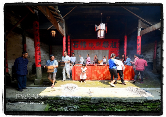 國家旅游地理 江西婺源(上饒)5月31日訊(特約記者王國紅 通訊員程新德攝影報(bào)道) “祭祀開始、鳴炮奏樂、祭拜、主持人講話、結(jié)束鳴炮”,5月25日,農(nóng)歷四月初八,石佛村烏飯節(jié),村民將自家精心制作的烏飯端進(jìn)祠堂祭祀。江西省婺源縣段莘鄉(xiāng)石佛村每年都要舉行烏飯祭祖活動,各家各戶將自家精心制作的烏飯端進(jìn)祠堂……