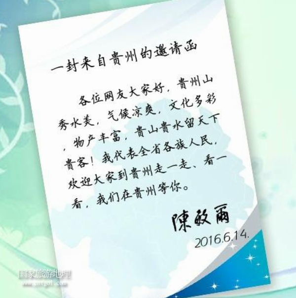 貴州省委書記陳敏爾網(wǎng)絡邀請大家到貴州旅游做客(圖)